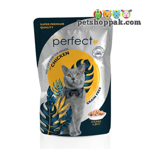 Perfect wet cat food chunk with chicken in jelly pouch